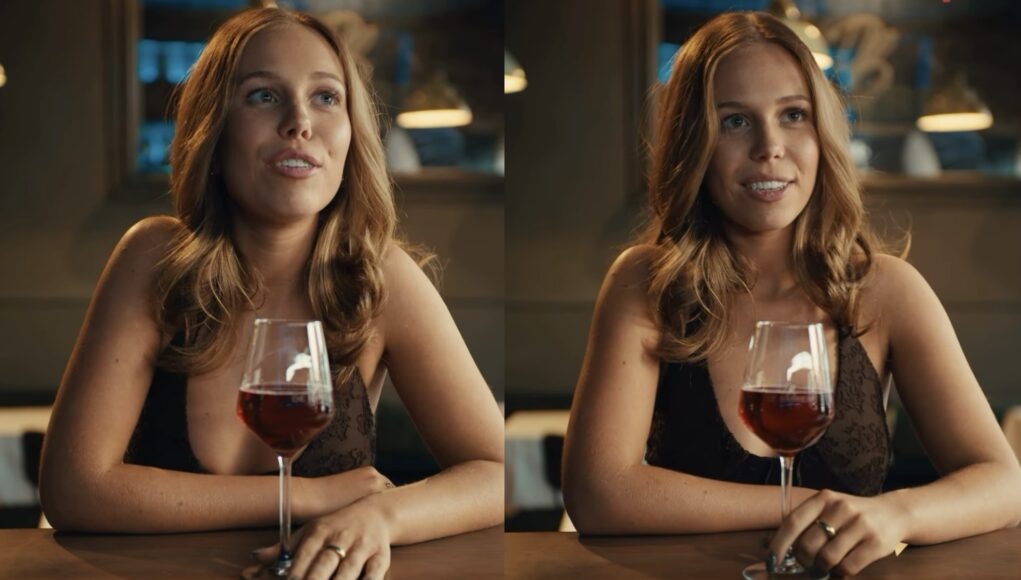 In de parodie verloopt de ‘date’ tussen de twee niet bepaald soepel. De man tegenover Rhodé uit stevige kritiek op haar houding en noemt haar onder meer “arrogant”, terwijl hij haar interesses niet kan waarderen. De situatie wordt nog ongemakkelijker wanneer ook de ober zich ermee bemoeit en zich aansluit bij de negatieve beoordeling, wat de scène een overdreven en komisch karakter geeft.