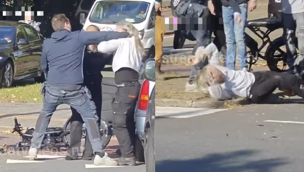Ook is het duidelijk dat beide partijen geen zin hadden om een schadeformulier in te vullen. De aangereden jongen ligt nog op de grond wanneer de video start en de oudere man komt al stoeiend op hem af. De jonge besluit in de verdediging, of aanval, te gaan en het wordt matten.