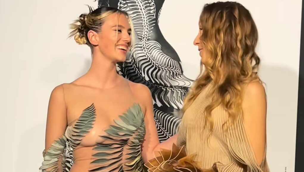 Zangeres Maan de Steenwinkel liet zich onlangs zien in een opvallende outfit: een jurk van modeontwerpster Iris van Herpen, half doorschijnend en gedragen op de rode loper bij de opening van Herpens tentoonstelling Sculpting the senses in de Kunsthal te Rotterdam. In haar eigen woorden: “Zo, zo, zo vereerd dat ik een van haar jurken mocht dragen,” waarmee ze haar opwinding en dankbaarheid uitte. Ze noemde het zelfs een meisjesdroom die werkelijkheid werd.